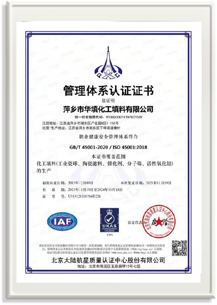 萍鄉(xiāng)市華填化工填料有限公司,位于320國(guó)道、109國(guó)道、浙贛鐵路、昌金高速公路貫穿其中,交通便利,是江西西部一顆燦爛明珠,創(chuàng)建于20世紀(jì)70年代初期,是中國(guó)石油天然氣股份有限公司“能源一號(hào)網(wǎng)”會(huì)員企業(yè)、中國(guó)石化物資采購(gòu)電子商務(wù)網(wǎng)絡(luò)和中國(guó)海洋石油總公司采辦業(yè)務(wù)系統(tǒng)成員單位,是上海大學(xué)江西材料基因組工程產(chǎn)業(yè)研究院工業(yè)陶瓷產(chǎn)業(yè)創(chuàng)新聯(lián)盟基地,且通過(guò)ISO9001:2015質(zhì)量管理體系、ISO14001:2015環(huán)境管理體系、ISO45001:2018職業(yè)健康安全管理體系認(rèn)證的化工填料生產(chǎn)企業(yè)。公司擁有陶瓷、塑料、金屬填料、催化劑、活性氧化鋁、分子篩等產(chǎn)品生產(chǎn)線,現(xiàn)有固定資產(chǎn)3616萬(wàn)元,占地面積3.8萬(wàn)平方米。公司具有悠久的生產(chǎn)歷史、雄厚的技術(shù)力量和先進(jìn)的生產(chǎn)工藝設(shè)備,可生產(chǎn)工業(yè)瓷球(支撐劑)、陶瓷、金屬、塑料質(zhì)的規(guī)整、散堆化工填料及分子篩、催化劑、生化濾料、活性氧化鋁、石化助劑、活性炭、環(huán)保材料、耐火材料等系列的200多種規(guī)格型號(hào)產(chǎn)品。
